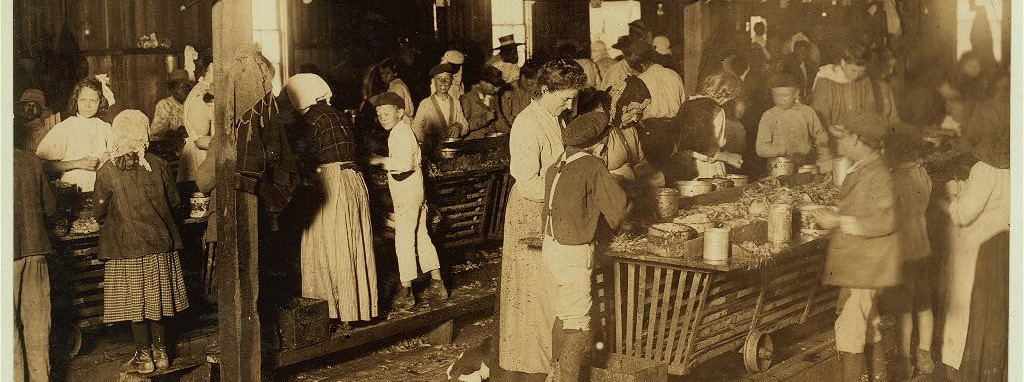 In the 20th century, Biloxi self described as the “Seafood Capital of the World.” In general, the male workers did the fishing, while women and children did most of the work at these factories. Most of the canneries were classified as “horticultural pursuits” and thus exempt from child labor laws. This practice largely ended in the 1910s following the photographic expose by reformer Lewis Hine and the National Child Labor Committee. Hine’s iconic photographs of seafood canneries are an invaluable depiction of what working conditions were truly like for seafood workers in the late 19th and early 20th century.